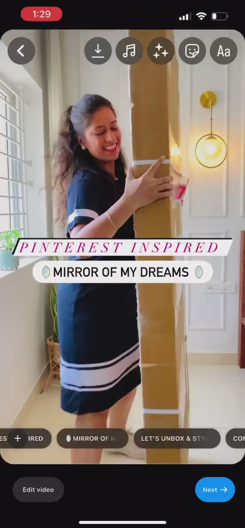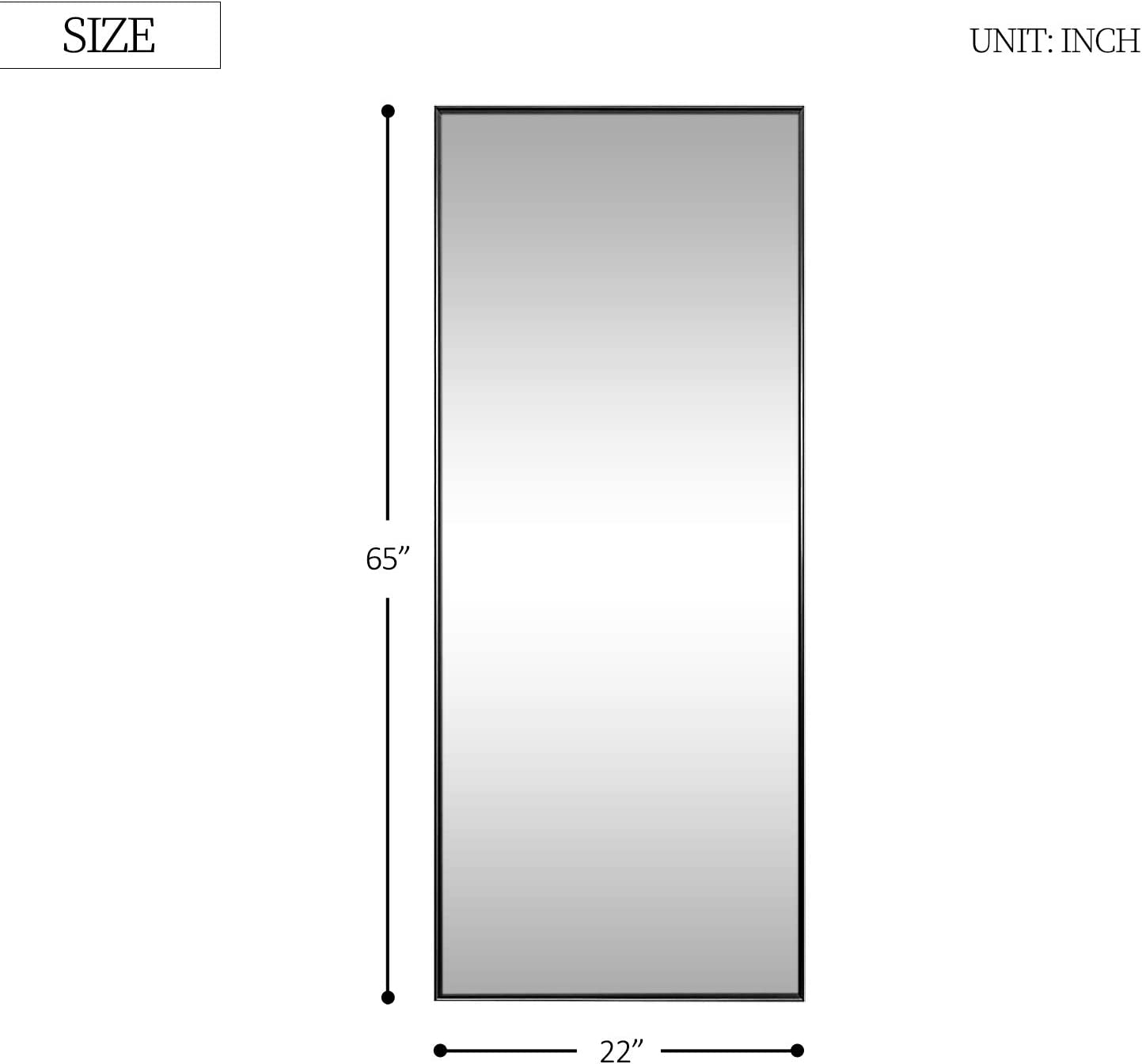 Extra big size for full body reflection . Height 65 inch width 22 inch