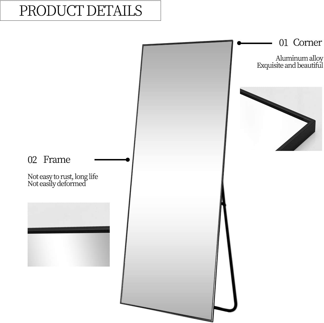 Full length rectangle mirror|65 inch long|Black color|Floor Standing Mirror by Sam Home Collection
